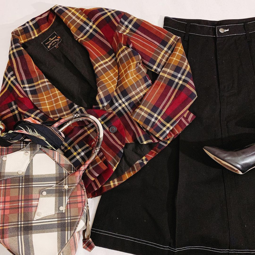 비비안웨스트우드 룩 - ^^ 드레이프의 퀸 웨스트우드 여사의 스타일이 담긴 체크자켓 ! 실사보다 살짝 밝게 나옴 - 그래도 비비안 자켓 느낌 다 아니까