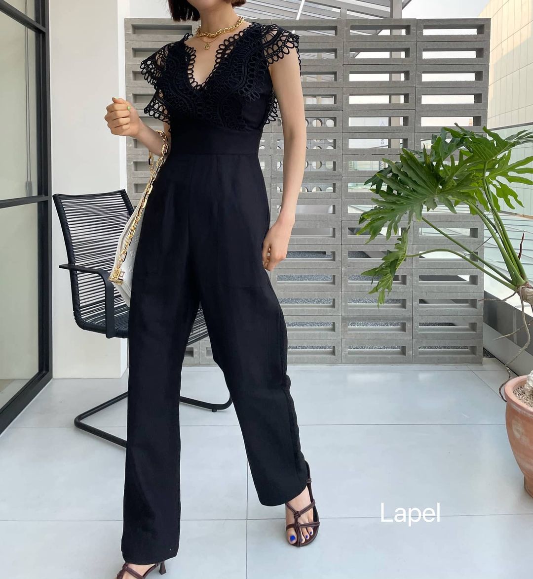 비스코스와 린넨이 섞인 고급스러운 블랙 점프수트예요!