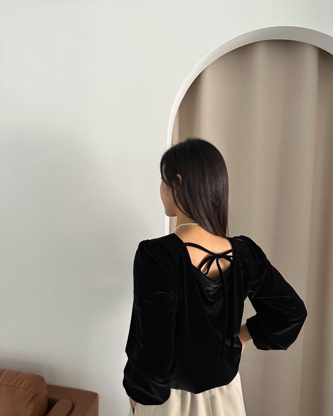 뒷리본 포인트 벨벳 블라우스에요 벨벳이라 따뜻하구 원단이 주는 특별한 무드🖤