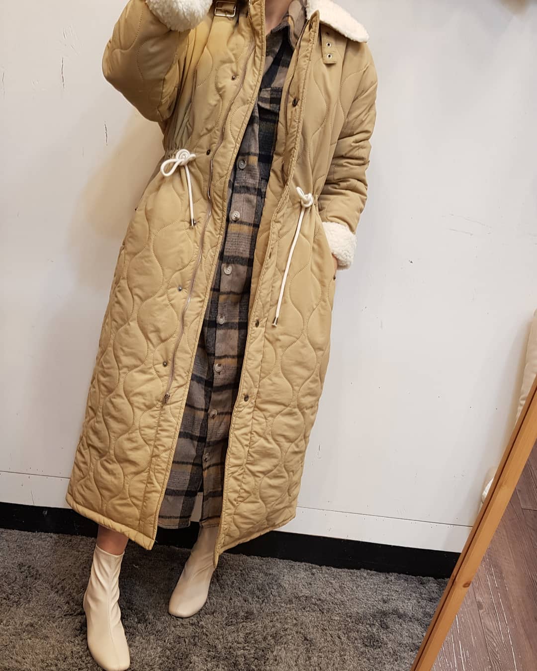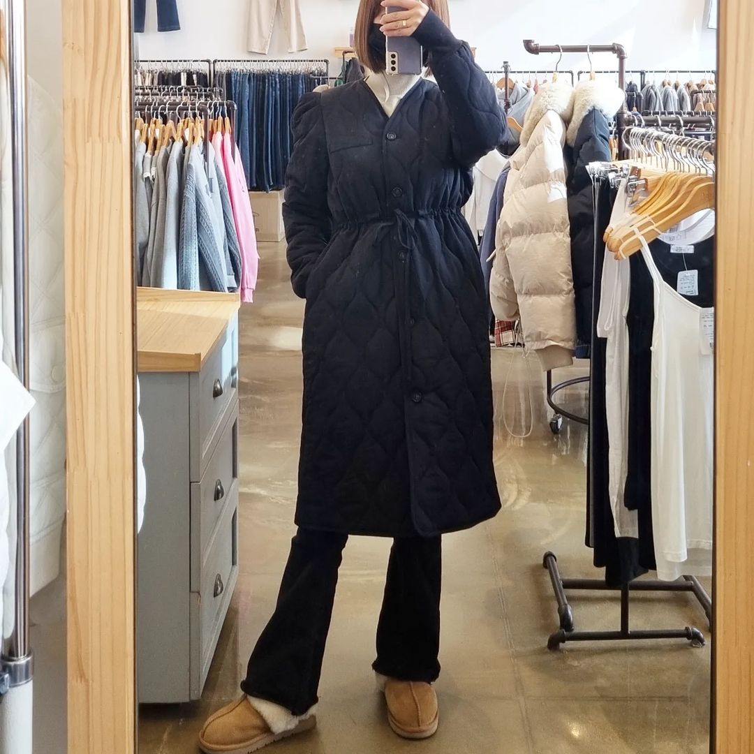 5온스 누빔패딩으로 한겨울까지 따뜻하게 입기 좋으면서 사이즈도 여유있어 통통하신 분들도 입기 좋구요, 안쪽에 끈이 있어 살짝 라인을 잡아 입어도 예뻐용💕