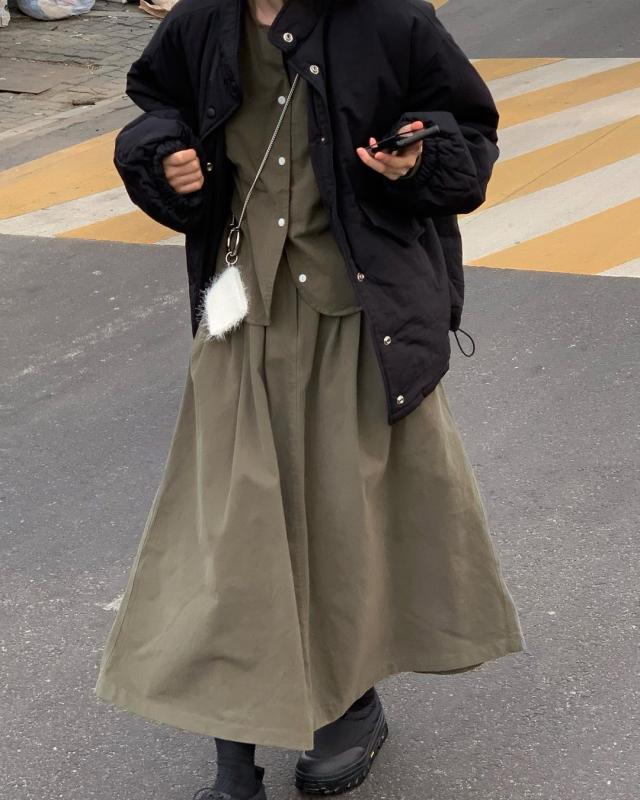 페이 blouse & 리빙 핀턱 skirt 뉴컬러 카키 🧤