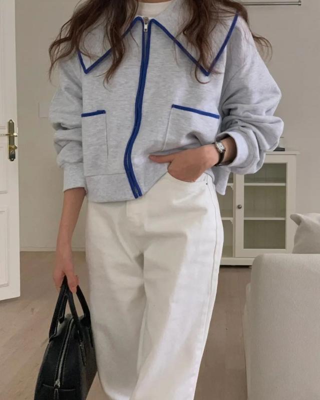 넥라인에는 카라 디테일로 캐주얼하면서도 영한 무드를 느껴보실 수 있구요