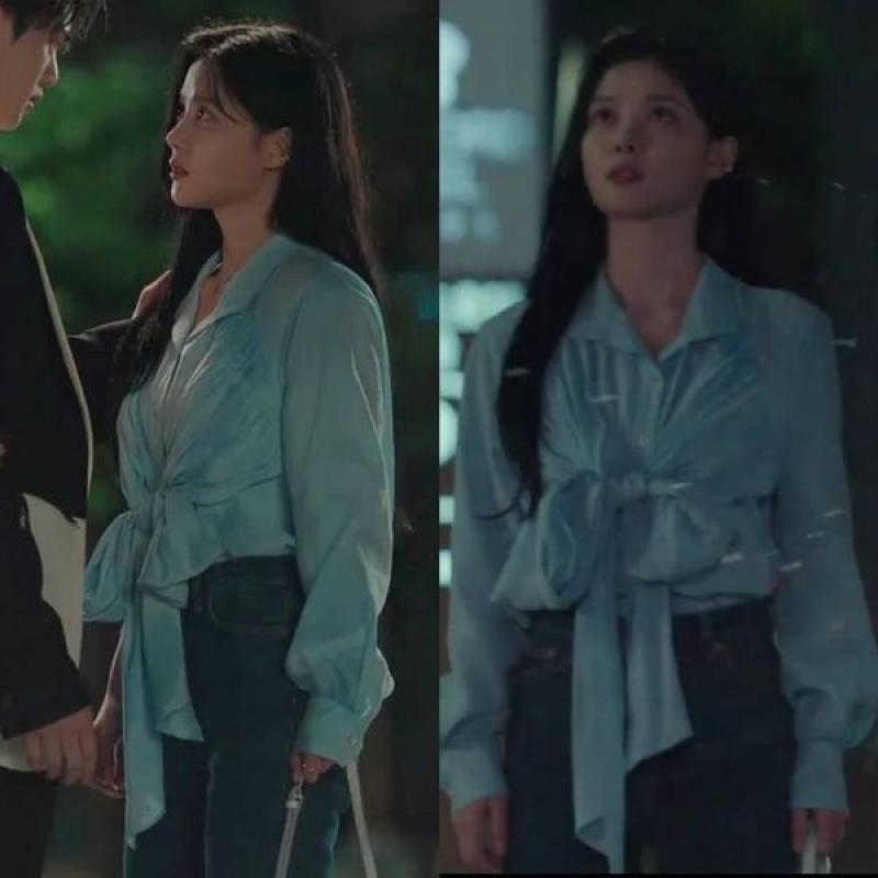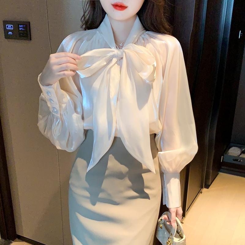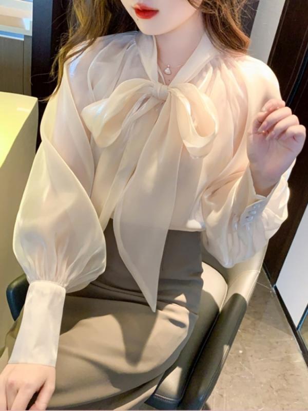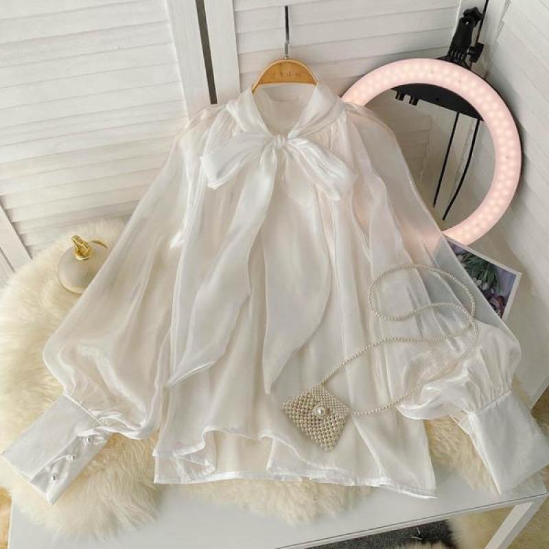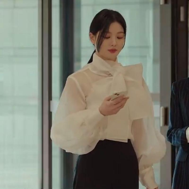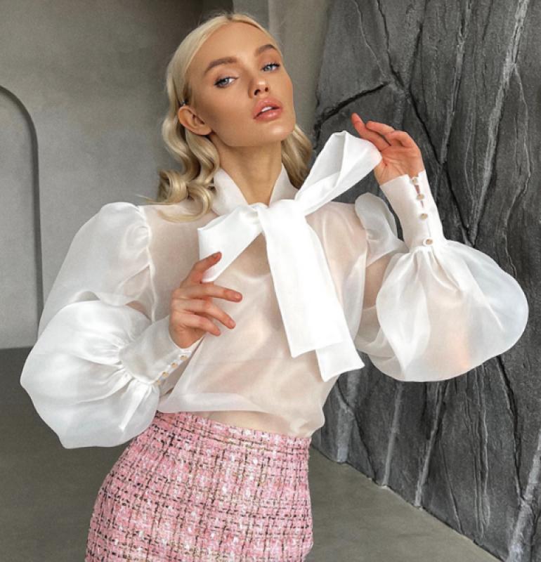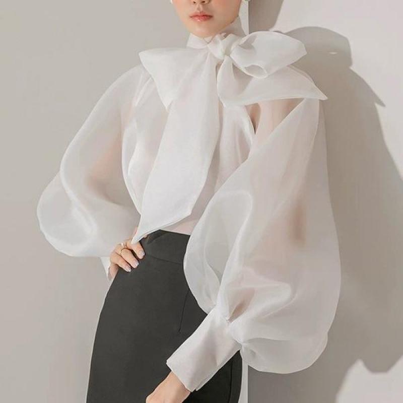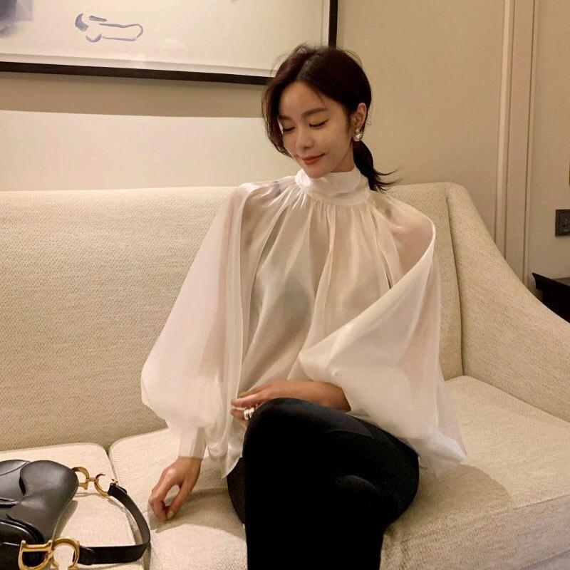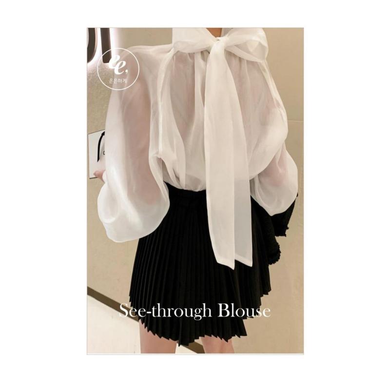 은은한 광택감이 돋보이는 시스루 블라우스