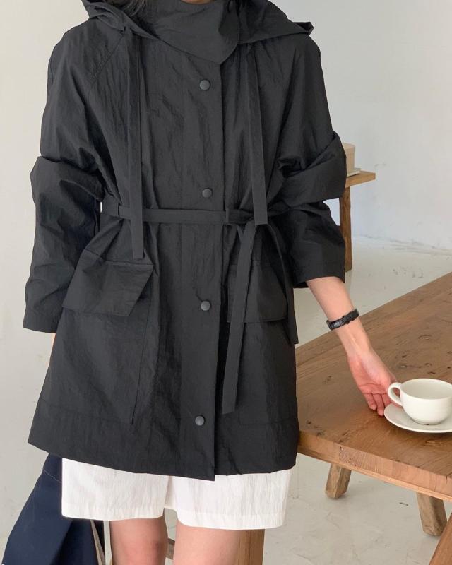 여성 봄 간절기 바람막이 언발란스 점퍼 아우터 :