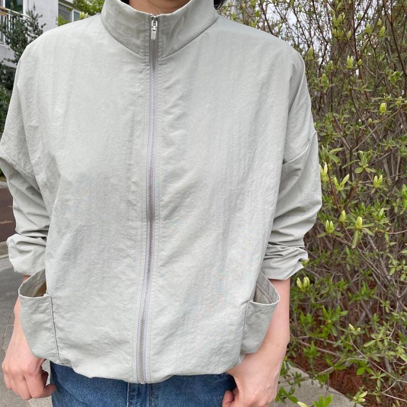 차이나카라의 싱글버튼 스타일로 가로 절개선으로 살짝 변화를 준 심플한 느낌의 여성 점퍼예요