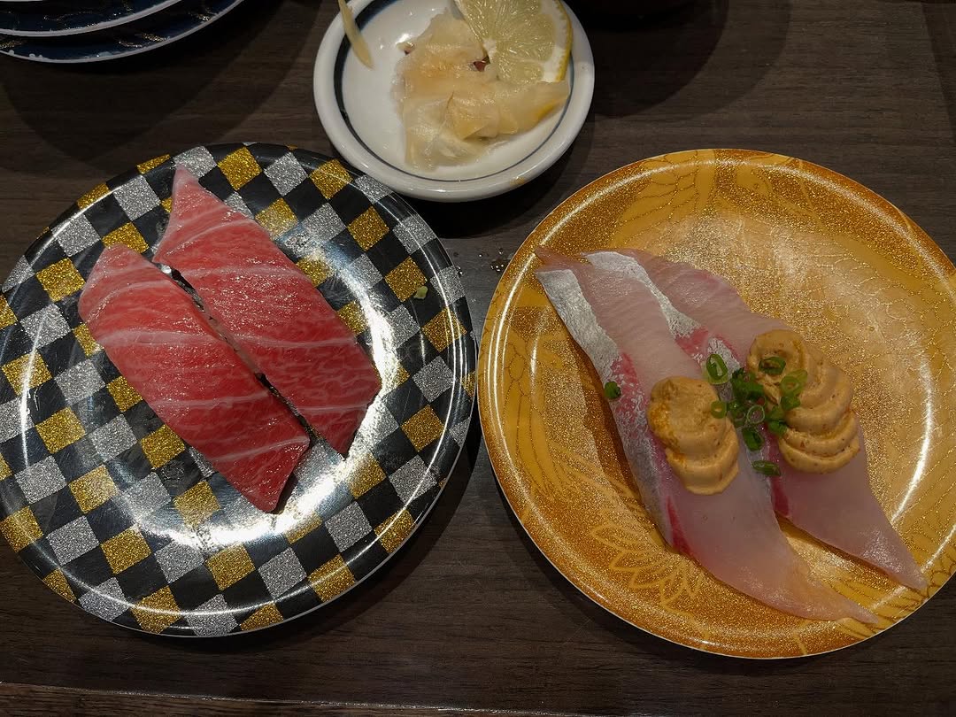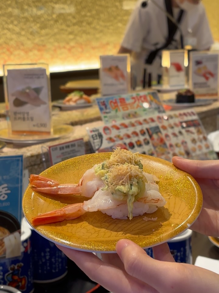 자리에 앉자마자 눈앞에서 빙글빙글 돌아가는 다채로운 초밥들에 군침이 돌기 시작했어요. 뭐가 제일 맛있을까 행복한 고민에 빠졌죠.