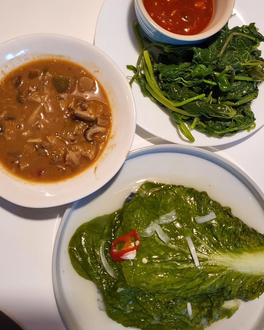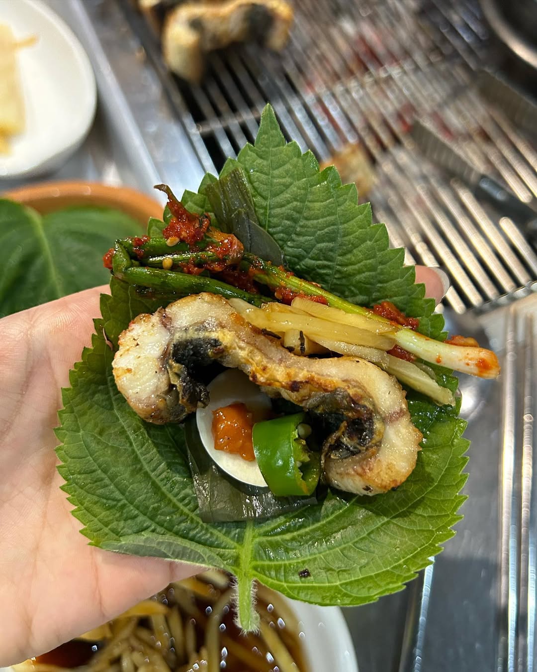 특히 명이나물, 깻잎, 파김치 등 다양한 쌈 채소와 곁들여 먹으니 물리지 않고 계속 들어가더라고요.