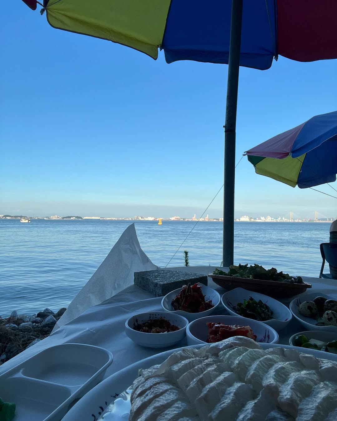 당진에서 부산 감성을 제대로 느낄 수 있다는 입소문을 듣고 방문했는데, 역시 기대 이상이었습니다! ✨ 가게 바로 앞에 펼쳐진 시원한 오션뷰는 말해 뭐 — ? 🌊 눈앞에 펼쳐진 푸른 바다와 시원한 바람, 거기에 알록달록 파라솔이 있는 야외 테이블까지! ⛱️ 정말이지 완벽한 조합이었어요.